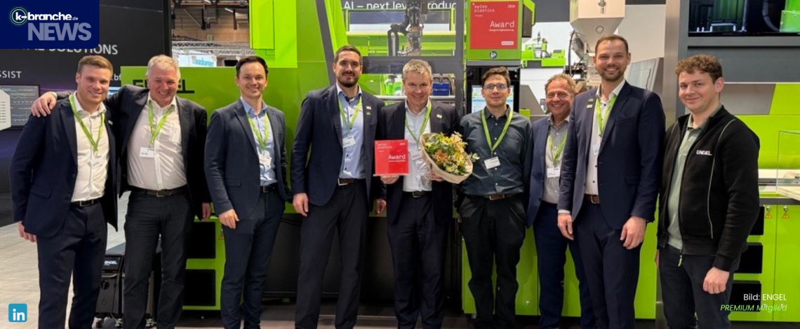 Mit diesem Ansatz adressiert ENGEL gezielt die Anforderungen des Schweizer Markts, der von hohen Qualitätsstandards, Fachkräftemangel und einem ausgeprägten Innovationsanspruch geprägt ist. Das Fachpublikum honorierte die konsequente Weiterentwicklung von inject 4.0 zu inject AI mit dem Swiss Plastics Expo Award 2026 – der Publikumspreis ging damit an eine Lösung, die nicht nur technologisch überzeugt, sondern auch konkrete betriebswirtschaftliche Vorteile bietet. Christopher Vitz, Geschäftsführer der ENGEL Schweiz AG, nahm den Preis entgegen.