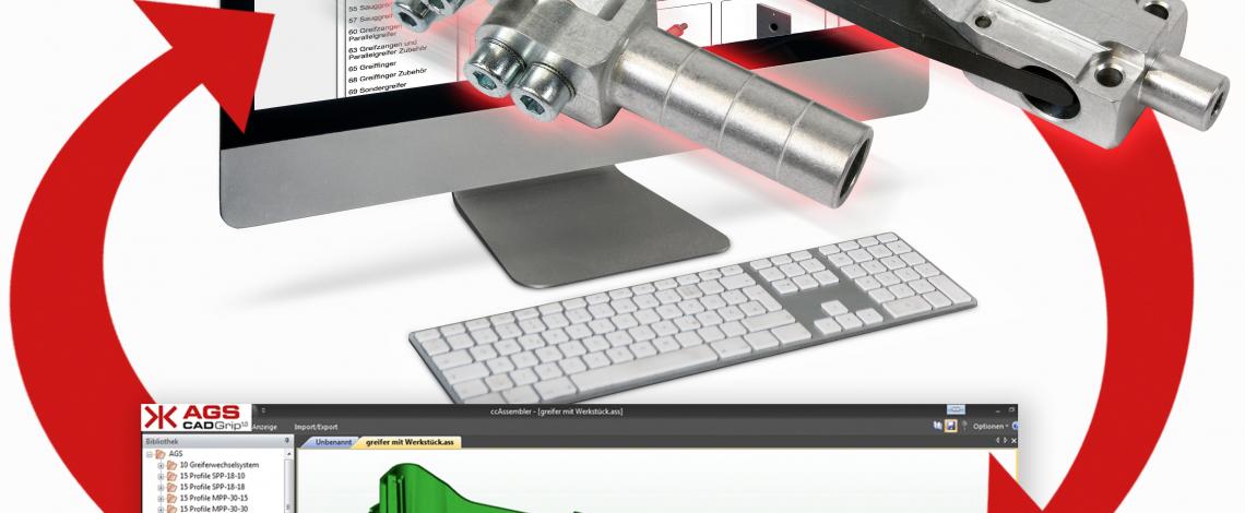 Konfiguration via Drag and Drop, des eigenen Greifers Stücklistenerzeugung und einfaches Bestellen im AGS-Shop