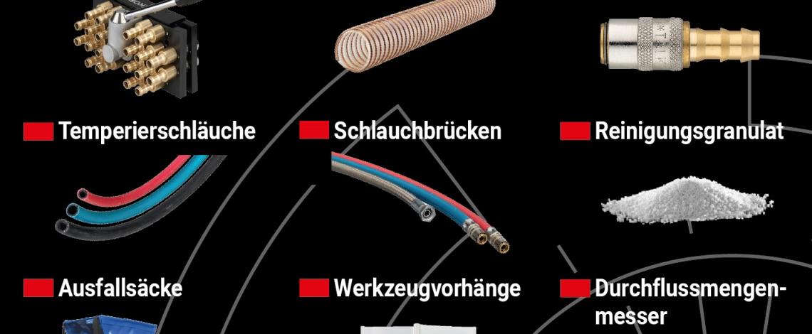 Vom Doppelnippel über die Schnellverschlusskupplung, Schläuche, Schlauchbrücken und alles was für den Anschluss und den effektiven Betrieb einer Spritzgussmaschine notwendig ist, bieten wir mit unseren Eigenmarke Talkob an.